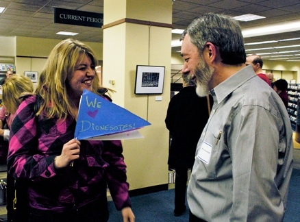 Last Friday I took a short, unsuccessful nap and resigned myself to un-Myers-Briggs-ish socializing (different from classroom banter), and we headed out to the Barrington Area Library for the Artist’s Reception. It was an unqualified success: well over a hundred folks showed up for the event. A number of people whose opinions I value were very complimentary regarding the work, and plenty of ’em said “I have to come back to look at the work.” I know what they mean. The social nature of a reception can make interaction with specific pieces difficult.